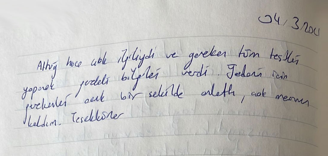Altuğ hoca çok ilgiliydi ve gereken tüm tesleri yaparak gerekli bilgileri verdi. Tedavi için gerekenleri açık bir şekilde anlattı, çok memnun kaldım. Teşekkürler.